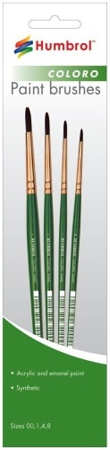 The paint brushes are for acrylic and enamel paint. Synthetic. Sizes 00,1,4,8